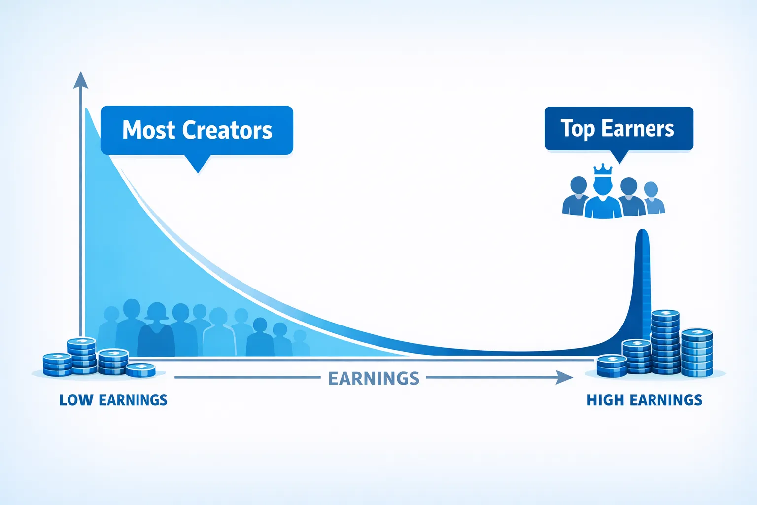 - A large share of creators earn very little.