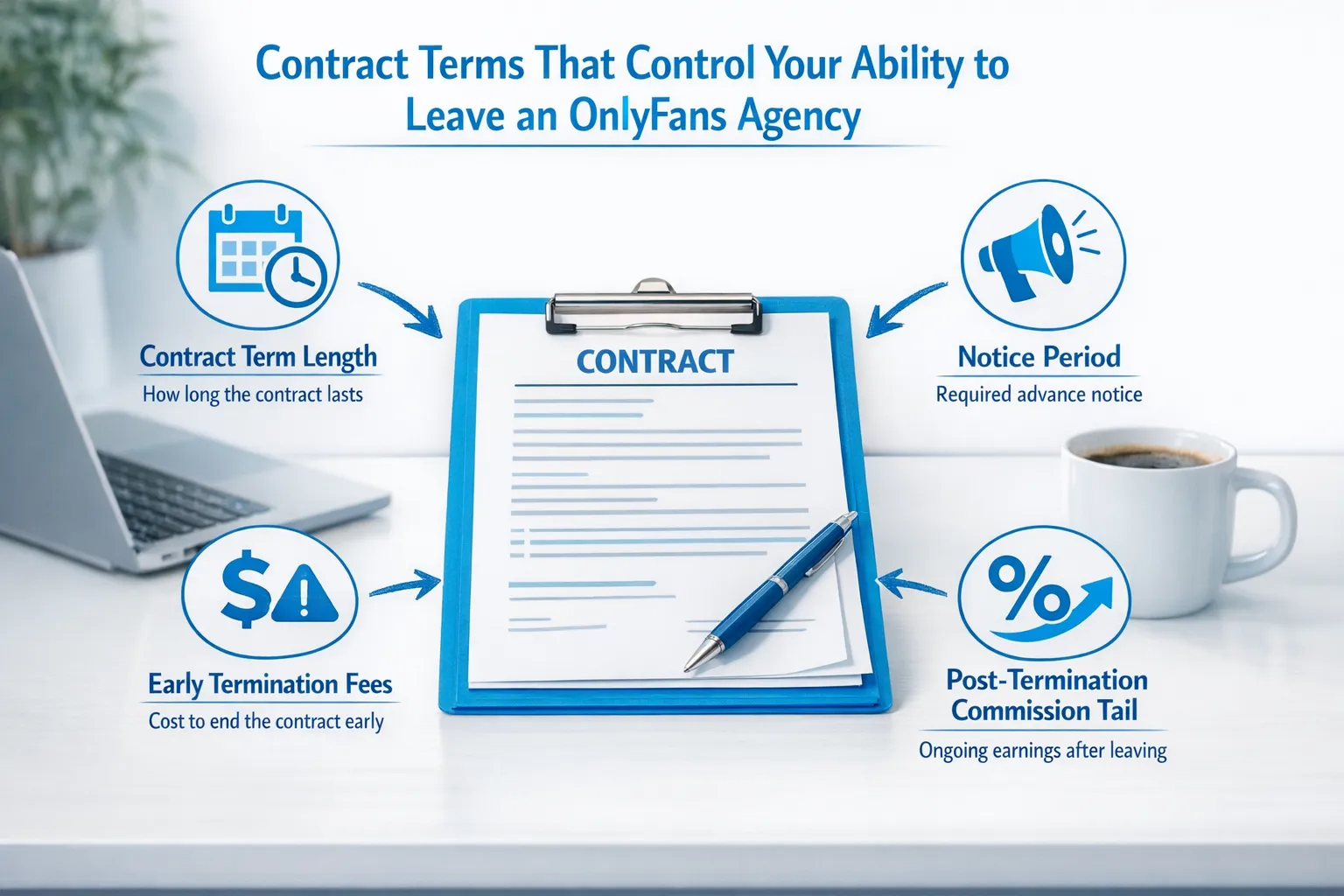 Can an OnlyFans agency keep taking a cut after I leave? Some contracts include a post-termination commission tail. Whether it applies depends on the exact language. If you see a tail clause, make sure it is narrow, time-limited, and clearly defined.