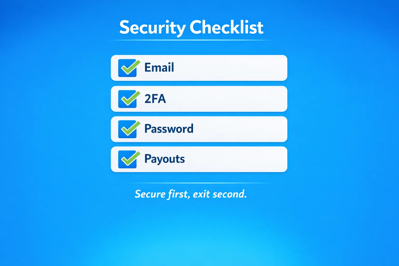 - You still have full access (email, 2FA, payouts)