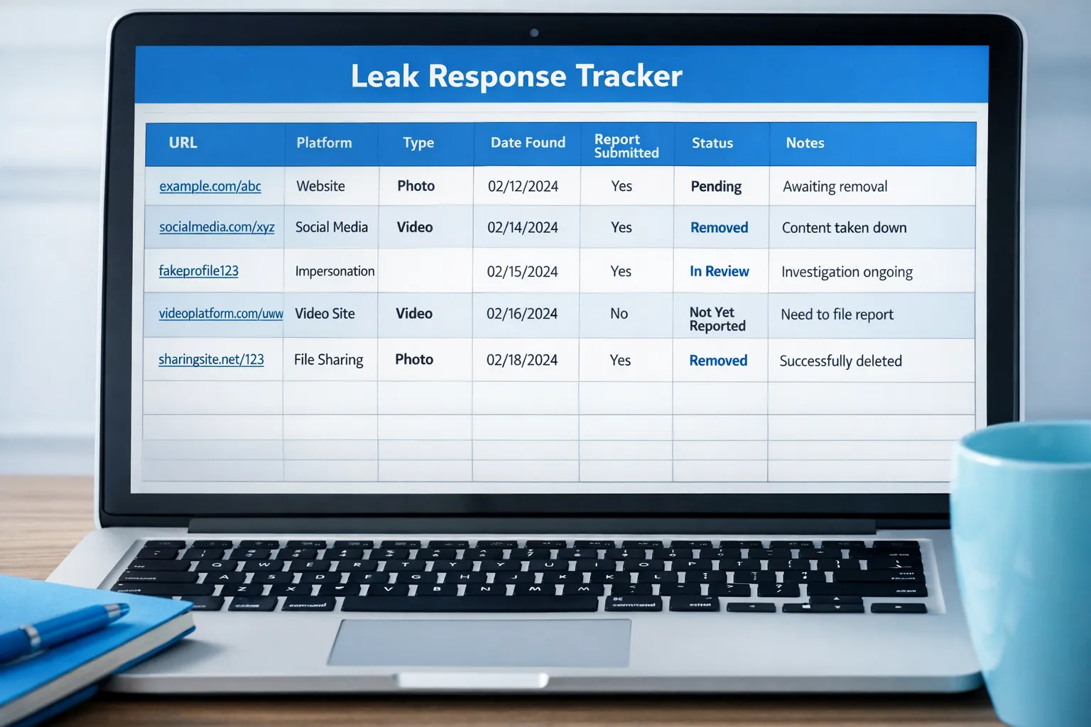 What if the leak site ignores my DMCA notice? Escalate to the hosting provider (and sometimes the CDN). If that fails, de-index the URLs in Google and consider professional help. Keep records of all notices sent.