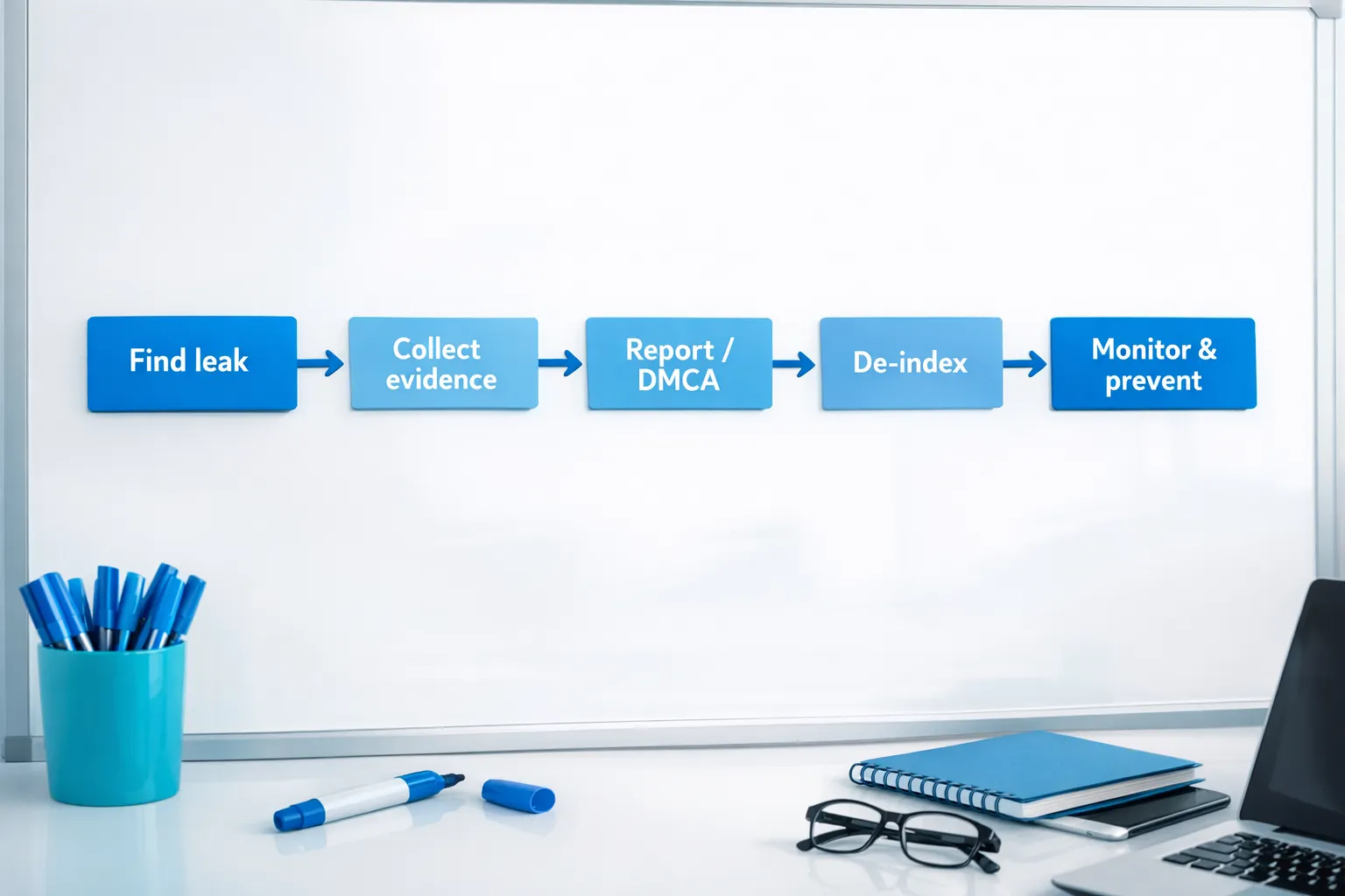Should I tell my subscribers about the leak? Usually, avoid public announcements that spread the link. If you address it at all, keep it short and don’t provide directions to find it.