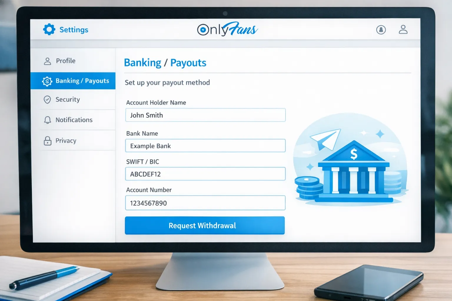 OnlyFans updates the interface sometimes, but the flow is usually consistent: you connect a payout method, verify it, then request a withdrawal.