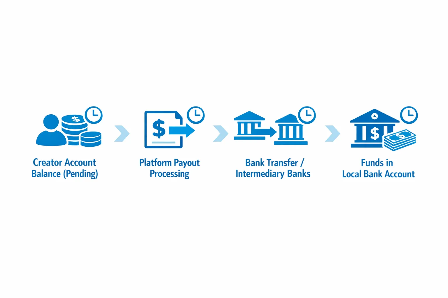 Before you change anything, figure out which “stage” is slow. Most creators lose time here by assuming it’s always the platform, when sometimes it’s the receiving bank.