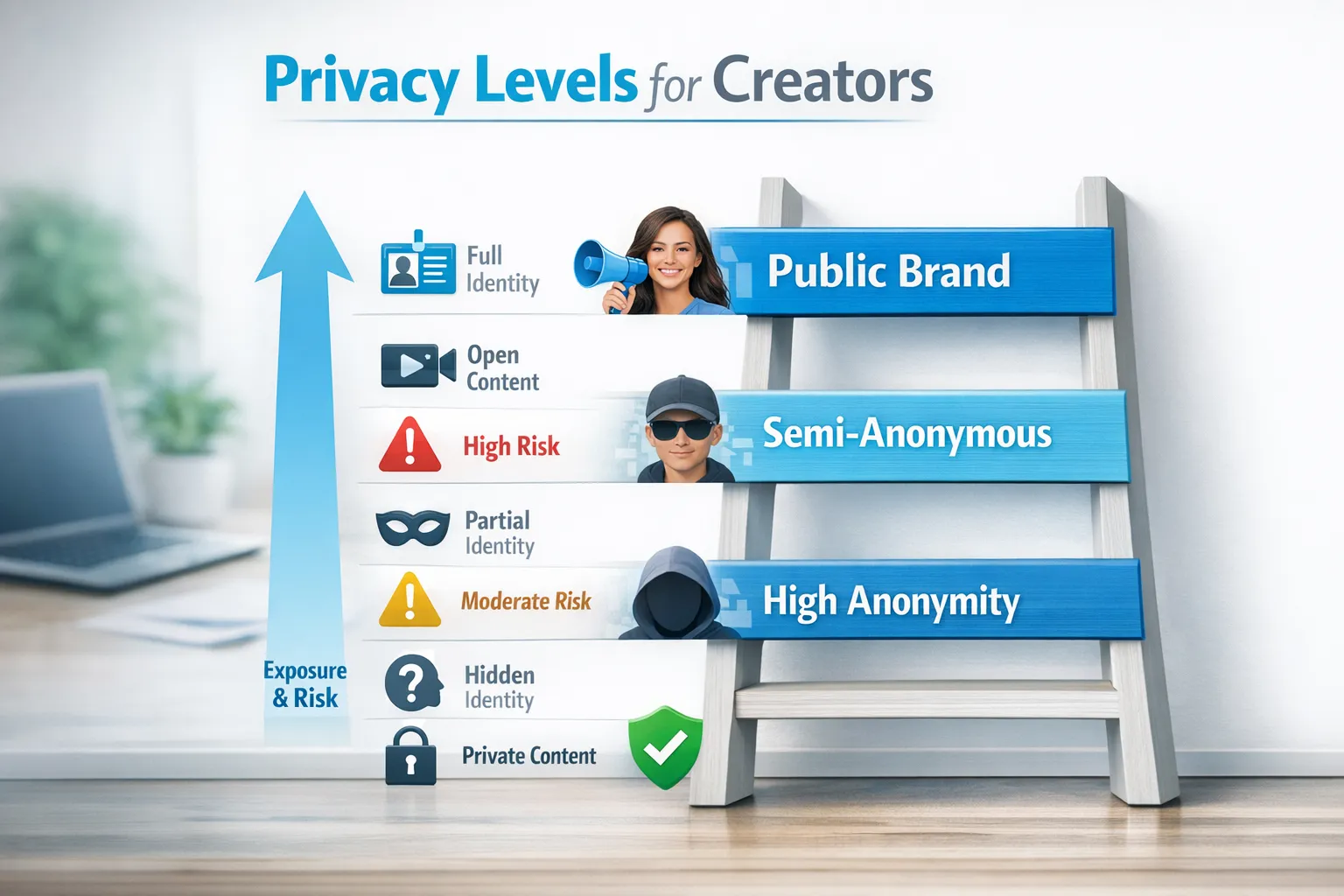 | High-anonymity (faceless) | No face, no identifying marks, strict separation from personal life | Best privacy protection | More planning and consistent “persona” building | Creators with strict privacy needs (family, career, local community) |