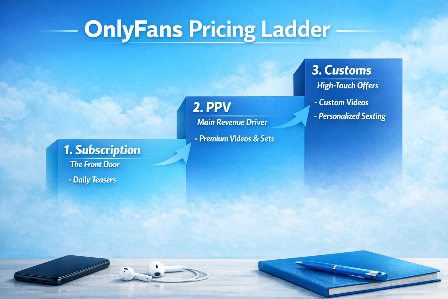 - Tier 1 (low): photo sets, quick teases, mini clips.