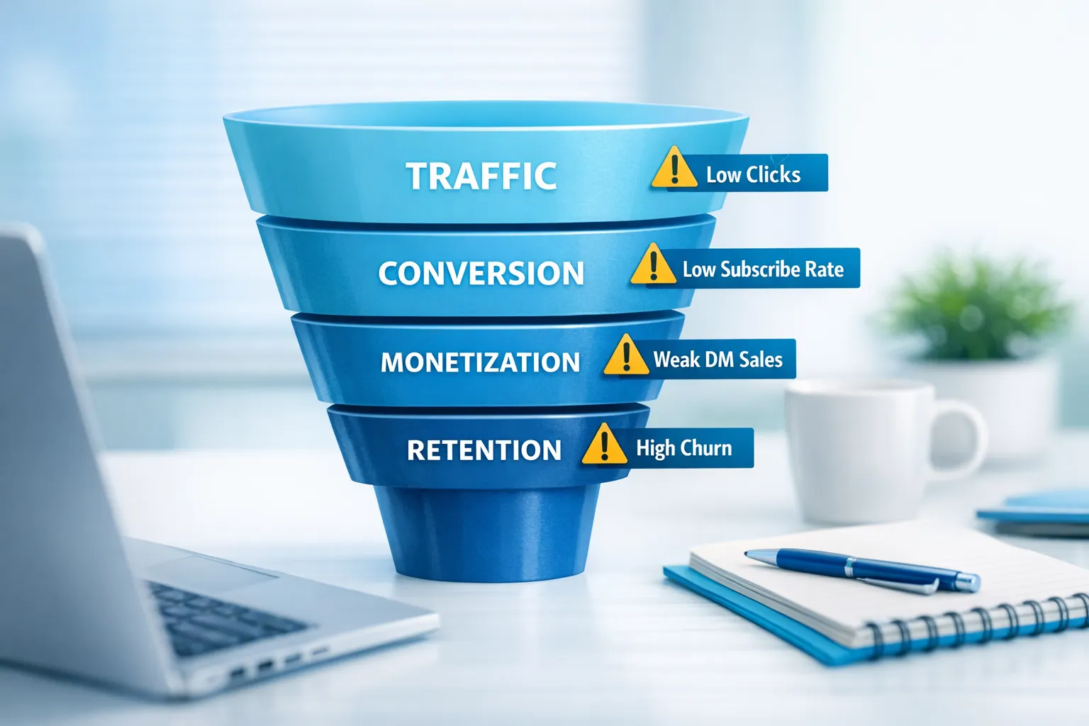 Most creators don’t fail on OnlyFans because they’re “not hot enough” or “don’t post enough.” They fail because their business has one (or more) broken links in the chain: traffic → conversion → monetization → retention.
